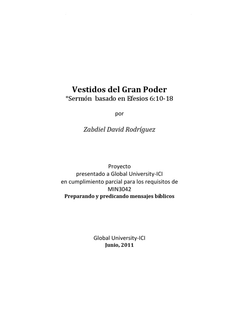 Es decir, el extremo de pensar que el diablo nada intentará contra los cristianos. Es decir, el extremo de pensar que el diablo nada intentará contra los cristianos. El dios maternal (génesis 21). Se llama sermón expositivo al que toma como texto un largo pasaje bÃblico.