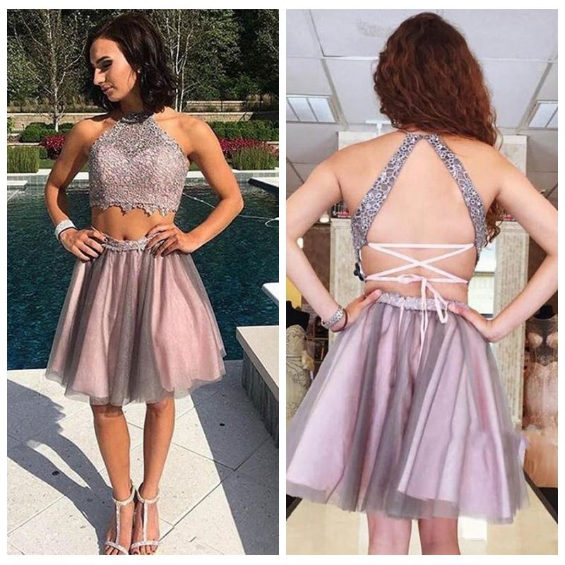 Grosshandel 2018 Zwei Stucke Neckholder Tull Homecoming Kleider Mini Kurze 8 Klasse Abschlussfeier Kleider Eine Linie Vestido De Fiesta Von Uniquedresses 68 12 Auf De Dhgate Com Dhgate